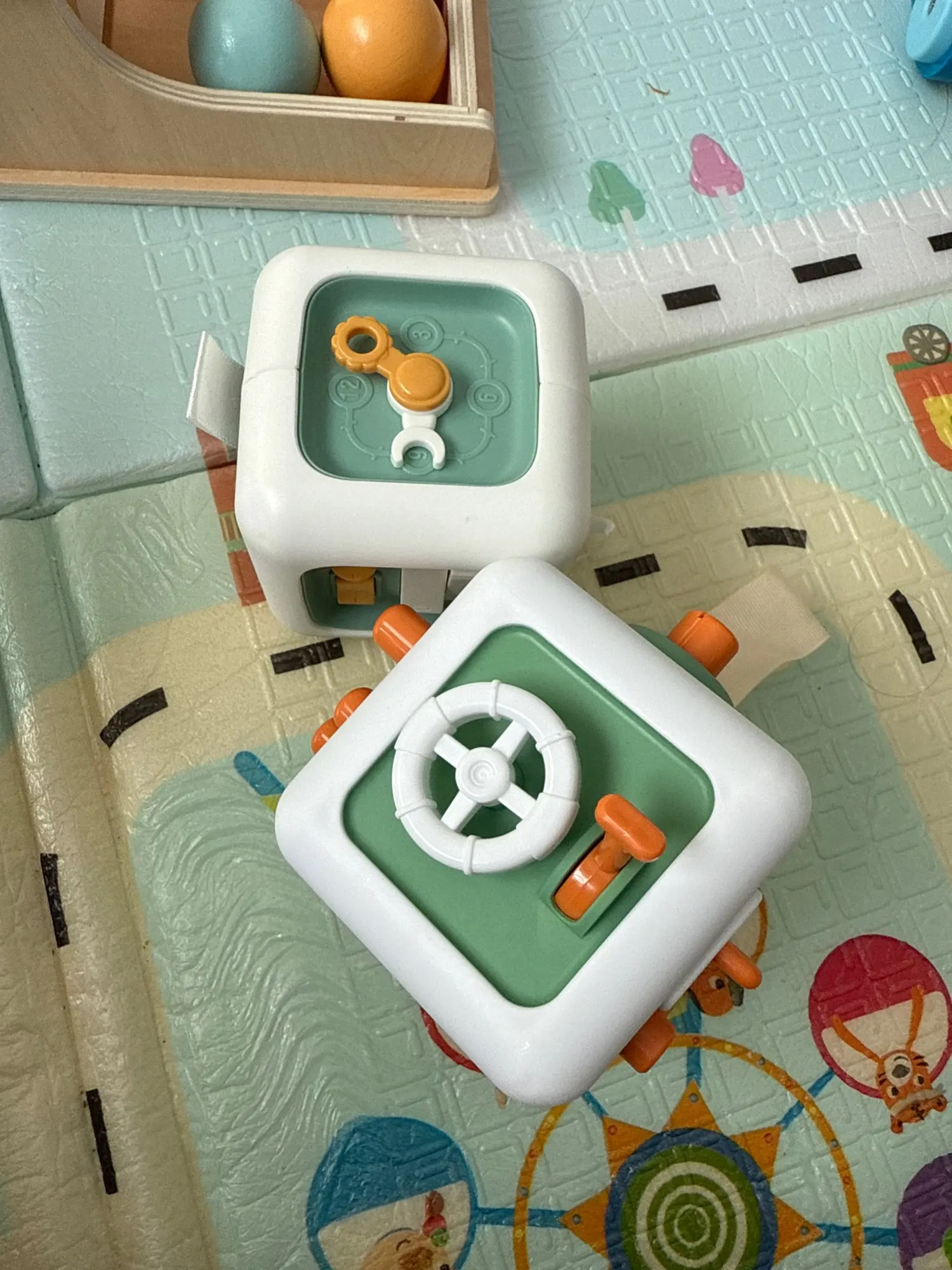 Turn learning into playtime with the 6-in-1 Montessori Educational Cube. Every side of this busy board is designed to spark curiosity and keep little hands exploring. From twisting and turning to opening and pulling, it helps toddlers build real-world skills while having fun